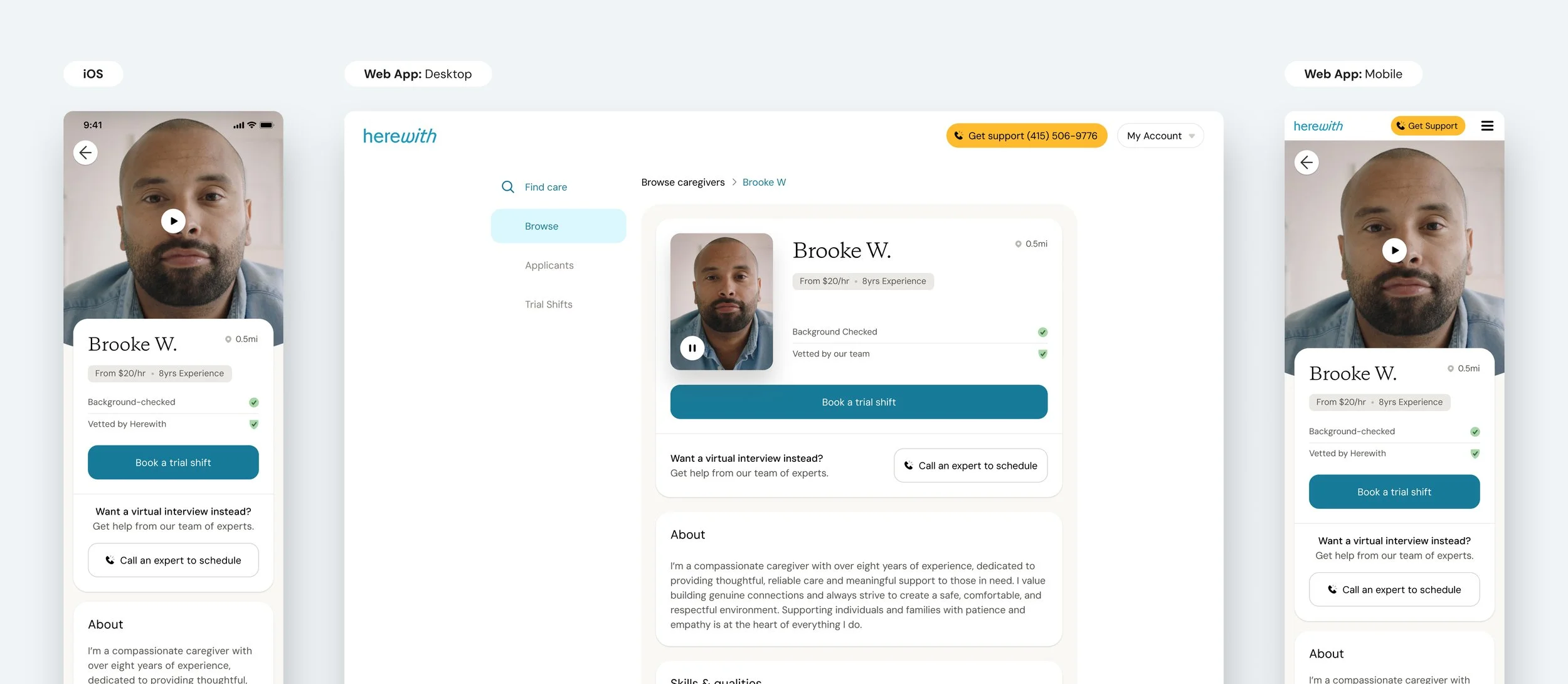 Our mission was to build a seamless platform that empowers families to hire, manage, and monitor high-quality care. We transformed a confusing process into an intuitive, trust-based experience.